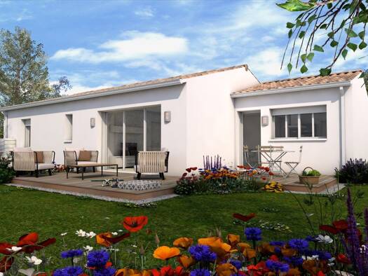 Maison à construire à vendre à Surgères 17700 Conçue de plain-pied, elle inclut quatre chambres, une grande pièce de vie lumineuse, une terrasse couverte et un garage. Des établissements scolaires de...