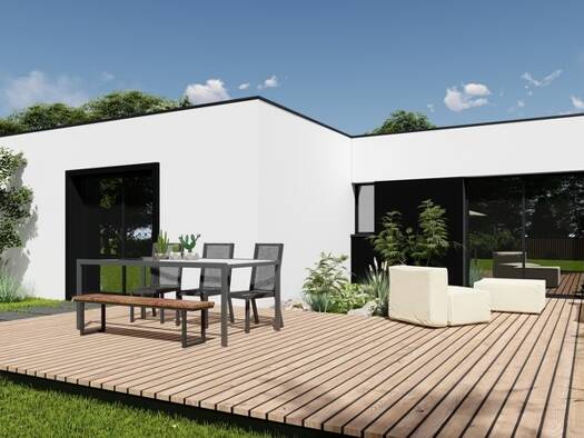 Sur ce terrain, nous vous proposons cette maison de plain-pied au design contemporain, idéale pour un confort de vie au quotidien. Ses deux chambres offrent un espace nuit cosy, tandis que la vaste p...