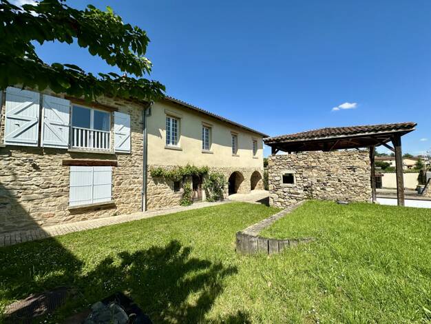 Nichée au coeur du village très apprécié de Vaugneray, cette maison en pierre datant d'avant 1948 allie authenticité et confort contemporain. Entièrement rénovée avec soin, elle offre le charme des h...