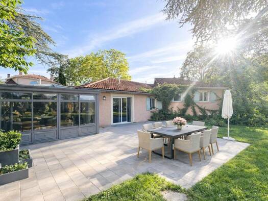 Pietrapolis Chaponost Sud-Ouest Lyonnais vous propose cette magnifique villa sur la commune de Saint-Genis-Laval. Située au coeur d'un splendide parc arboré de près de 5000 m² au calme absolu avec pi...