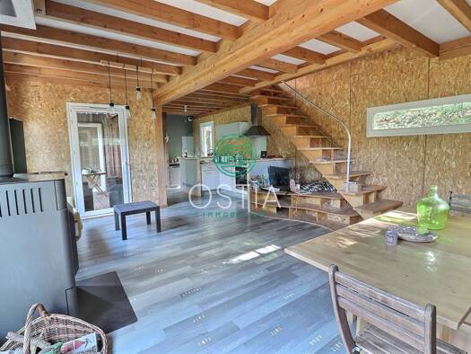 Nichée au coeur d'un environnement verdoyant, cette charmante maison en ossature bois vous séduira par son caractère atypique D'une surface habitable d'environ 115m², elle offre une atmosphère chaleu...