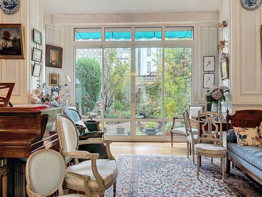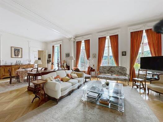 Situé au cœur d'un remarquable hôtel particulier, cet appartement au caractère unique offre de généreux volumes et une élégance rare. Les pièces de réception s'ouvrent pleinement sur le jardin exposé...
