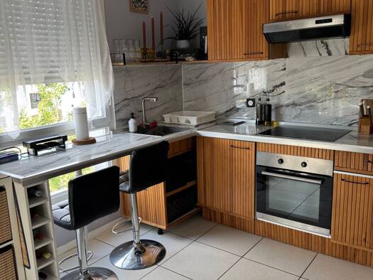 Quartier Villenave Chambéry Dans résidence sécurisée, appartement de 42m2 au 1er étage sur 3 avec ascenseur comprenant 1 place de parking, 1 local vélo A 10 min à pieds des commodités (piscine olympique, pharmacie, cabinets médicaux, boulangerie, lidl, 5 min en voiture du Leclerc Leognan) A 5 min de la ligne de bus n°5 A 8 min en voiture du terminus du tram C "Villenave Pyrénées" L'appartement comprend une pièce de vie : cuisine et salon Cuisine équipée : frigo/congélateur, micro ondes, four, p...