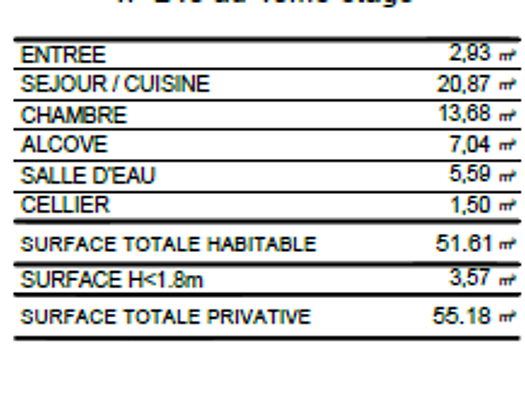 Appartement 3 pièces à louer – Le Blanc-Mesnil Avenue de la Division Leclerc, dans résidence neuve, appartement 3 pièces de 52 m² situé au 4ᵉ étage avec ascenseur. Séjour avec cuisine ouverte (en cours d'aménagement), salon, alcôve. Vue dégagée (la Tour Eiffel au loin), exposition Sud-Ouest. Parking en sous-sol. Chauffage collectif. ENTREE 2,93 m² SEJOUR / CUISINE 20,87 m² CHAMBRE 13,68 m² ALCOVE 7,04 m² SALLE D'EAU 5,59 m² CELLIER 1,50 m² SURFACE TOTALE HABITABLE 51.61 m² SURFACE H<1.8m 3,57 m...