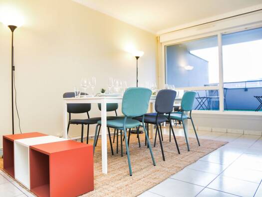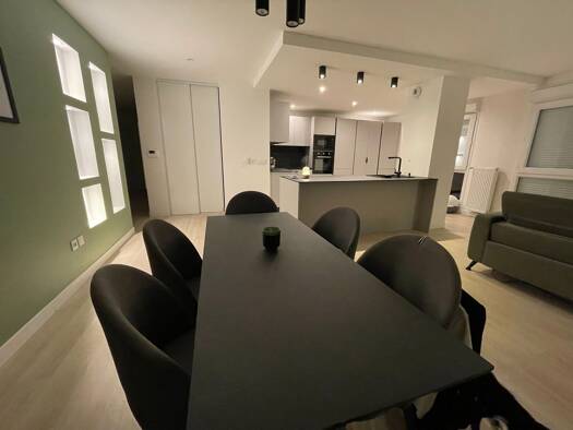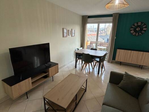 Appartement 2 pièces meublé de 44m², lumineux et entièrement équipé, situé à Vaujours dans une résidence calme. L’appartement se compose de : • Un séjour spacieux et lumineux avec canapé, table basse et espace repas (TV NON INCLUSE) • Une cuisine ouverte entièrement équipée (four, plaques, micro-ondes, réfrigérateur, lave-vaisselle, grille pain) avec bar • Vaisselle et ustensiles de cuisine fournis (assiettes, verres, couverts, casseroles, poêles, Tupperware, plat en verre etc.) • Une chambre a...