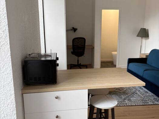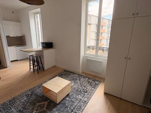 particulier, loue, très agréable, studio meublé, Jaude, centre-ville, proche, tout commerce et commodités Entrée, cuisine avec frigo, poste de cuisson, four, table et chaise. Séjour avec grand placard, banquette, clic, clac, lit une place, bureau. Salle de bain, avec WC et douche Loyer avec charges incluses tout compris chauffage électricité et eau ,635€ par mois Pas de parking Renseignement et prise de rendez-vous pour visite Disponible à partir du 1er mars