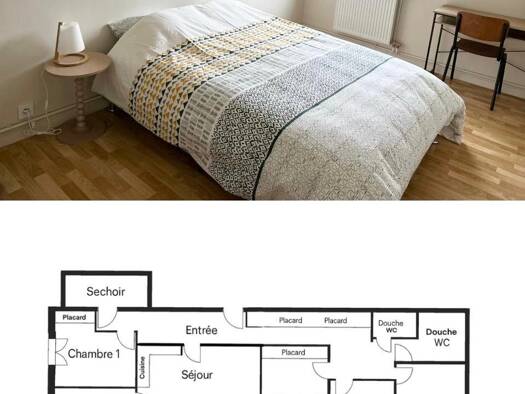 1 chambre à louer dans notre appartement de 3 chambres en tout, en colocation. L’appartement a été récemment rénové et meublé à neuf et avec goût. Il est situé rue Marcelin Berthelot, au 4e étage et dernier étage avec vue dégagée, à deux pas de la place Napoléon et des principales écoles de La Roche sur Yon (ICES, ICAM, IFSI, Audencia). Pièce de vie de 30 m² sur parquet comprenant : - Cuisine ouverte, entièrement aménagée et équipée : frigo, congélateur, four, micro-ondes, lave-vaisselle, lave-...