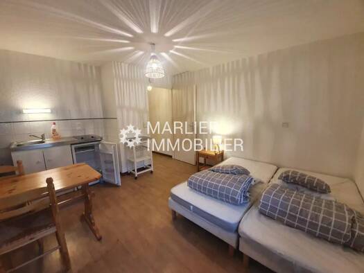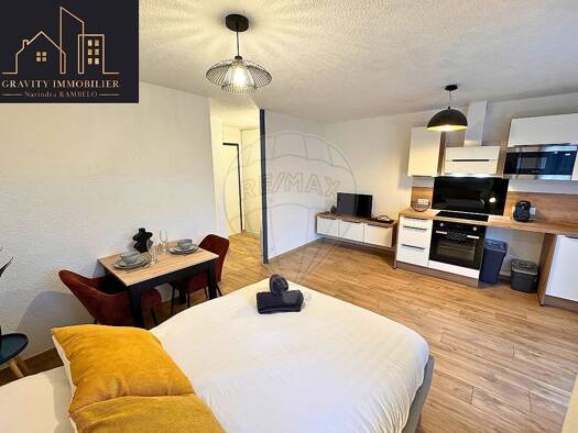 Loue un studio meublé de 22 m2 avec à l intérieur : 1 canapé lit clic clac, 1 TV, 1 table, 4 chaises, un banc, une armoire, 1 lave linge, 1 plaque vitro 4 feux,1 réfrigérateur, 1 four, 1 évier, placards de cuisine, 1 WC, 1 vasque, 1 douche. A l extérieure 1 terrasse de 5 m2 en plus et une place de stationnement. Le loyer seras de 600 € mensuel toutes charges comprises.
