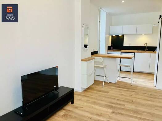 - PAU, CENTRE VILLE - STUDIO de 19 m2 environ (15 m2 au sol + 4 m2 de mezzanine) - ENTIEREMENT MEUBLE - Dans une rue piétonne, à deux minutes à pied de la place Clémenceau, cet appartement comprend : une pièce de vie, une mezzanine avec lit double, un coin cuisine aménagé et équipé (frigo top, lave linge, plaque électrique, micro-ondes, machine Nespresso), une salle d'eau (douche et toilettes), un dressing. Mobilier de qualité, chauffage électrique, appartement clé en main. Local à vélo commun....