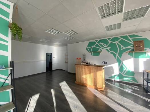 Local commercial de 65 m² avec vitrine, actuellement aménagé en salon de coiffure. L'espace peut accueillir jusqu'à 4 postes de coiffure et dispose de deux bacs à shampoing. Il comprend également une...