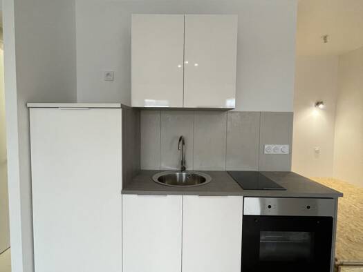 Studio neuf – Rez-de-chaussé Au sein d'une résidence calme, et à côté des commodités, venez découvrir cet appartement neuf avec des matériaux de qualité en rez-de-chaussée, d'une superficie de 27 m2 (Loi Carrez). Il se compose d'une pièce de vie avec une cuisine équipée (frigo, four, plaque vitrocéramique, meuble haut, meuble bas), table et chaises, une salle d'eau avec wc (non présente au moment des photos, la douche est bien équipée d'une paroi depuis), un espace nuit avec dressing et un larg...