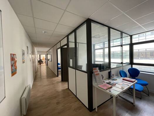 Au coeur de la zone de Kergaradec à GUIPAVAS, un plateau de bureaux en RDC surélevé, très lumineux, comprenant un accueil, 4 bureaux, 4 salles de formations, une salle de pause, un espace de stockage...