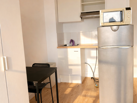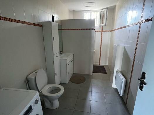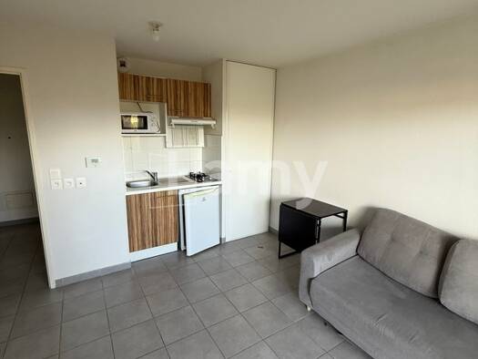 Un salon avec cuisine équipée, et une chambre avec salle de bain séparée. Salle de bain avec douche et toilette ensemble, au premier étage, pas d'ascenseur. Une place de parking abrité comprise. Louer meublé. 525 Hors charges + 50 euros de charges (charges communes électricité, ménage et ordures) = Loyer 575 euros CC Chauffage électrique et compteur d’eau individuel. Situé au centre ville d’Ambès (Bordeaux Métropole), ligne de bus 31, 61 à 300 m de l’appartement et sinon à 15 min en voiture d'A...