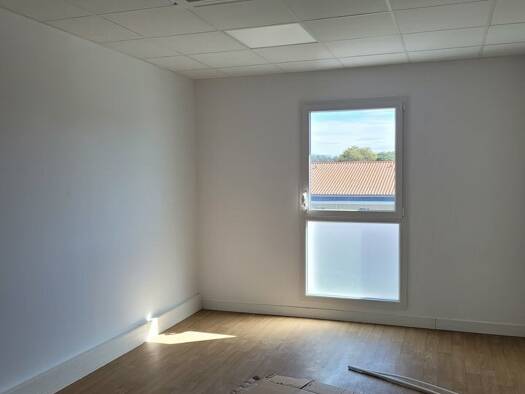 Proche de la sortie de l'autoroute, au 1er étage, d'un immeuble de bureaux, très lumineux, bureau d'environ 17m2. Terrasse et sanitaires communs. Il est livré fini climatisé avec point d'eau. Le stat...