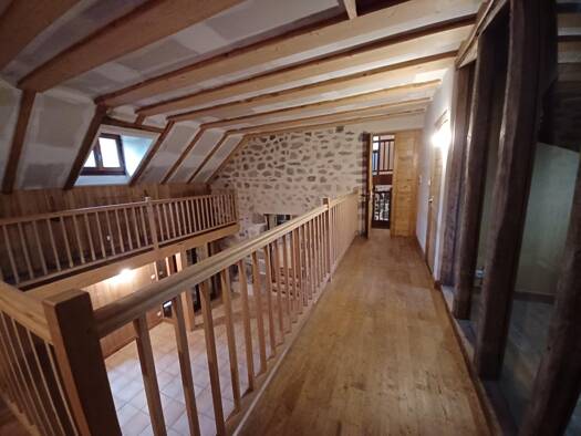 1er corps de logis (façade principale) Rez de chaussée : Une grande salle avec cheminée -Une cuisine 1er étage-Une petite chambre (8m²) avec placards-Une chambre avec placards Une salle de bain avec ...