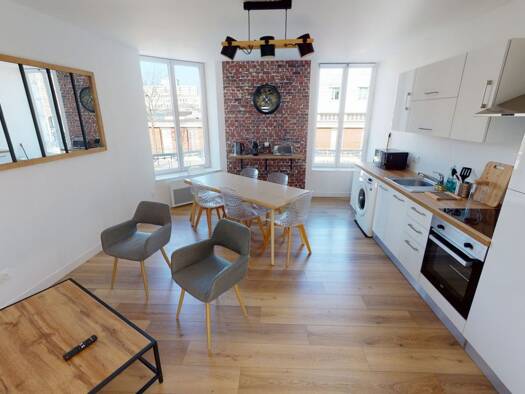 Colocation meublée de 5 chambres dans un appartement entièrement refait à neuf, pratique et équipé, se situe au 6ᵉ étage d’un immeuble avec ascenseur. Le logement dispose d’une grande entrée aménagée, Cuisine équipée (plaque de cuisson, hotte, four, micro-ondes, machine à café, chauffe eaux et rangements, ainsi qu’un lave-linge séchant.), Deux salles d’eau avec douches, meubles vasque, miroir et rangements, dont une avec wc., D'un WC séparé avec lave mains, Les chambres sont équipées chacune d’...